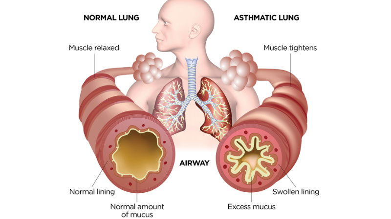 Jednym z nich jest astma alergiczna związana z nadaktywnym układem odpornościowym. Wywołuje on problemy z oddychaniem po wystawieniu na działanie alergenu. Powszechne alergeny odpowiedzialne za wywoływanie astmy to roztocza kurzu domowego, pleśń, pyłki i sierść zwierząt domowych.